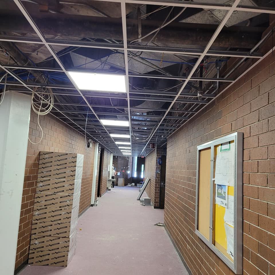 Summer updates included new suspended ceilings for three elementary schools, the Votech Building in OHS, and Career Academy. A free hanging cloud with sound baffles was hung in the main space of Career Academy.